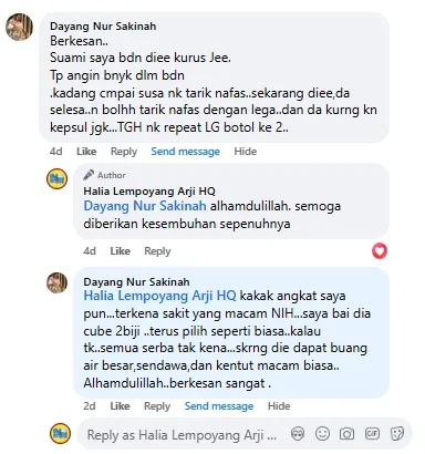 Sekarang ANGIN DAH BERKURANG, BADAN RASA RINGAN. Yang penting PERUT TAK KEMBUNG”